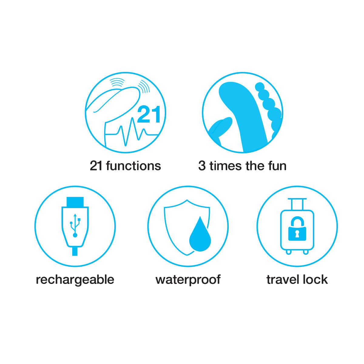 Reinvent the orgasm with triple the stimulation, thanks to this expertly designed, curved rabbit vibrator. 3 powerful motors are ready to wow you with all-over stimulation and give you the biggest and best blended orgasms possible.