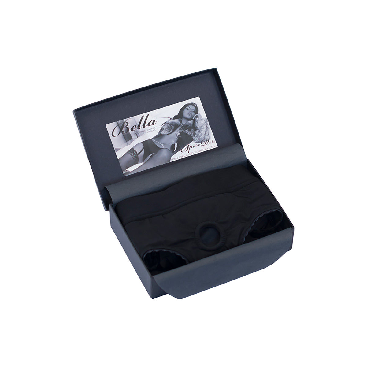 The unattainable tease, Bella seduces with come-hither details and a lick of lace. Bella is a distinctly dangerous blend of sensuality, sophistication, and drama-and the most intoxicating lingerie harness in our line. With her, everything smolders: delicate stretchable lace, a cascading bow, and the perfect peek of rear cleavage. Bella cuts a stunning silhouette-and casts a spell impossible to shake. The durable O-ring allows the wearer to choose from single or double dildos in perfect comfort without losing its shape. Bella's breathable, barely-there fabric is luxuriously soft and ideal for all-day wear. From the midnight rendezvous to the morning motorcycle ride, Bellaft.s ready. SpareParts HardWear makes harnesses to suit you whatever your size or shape.