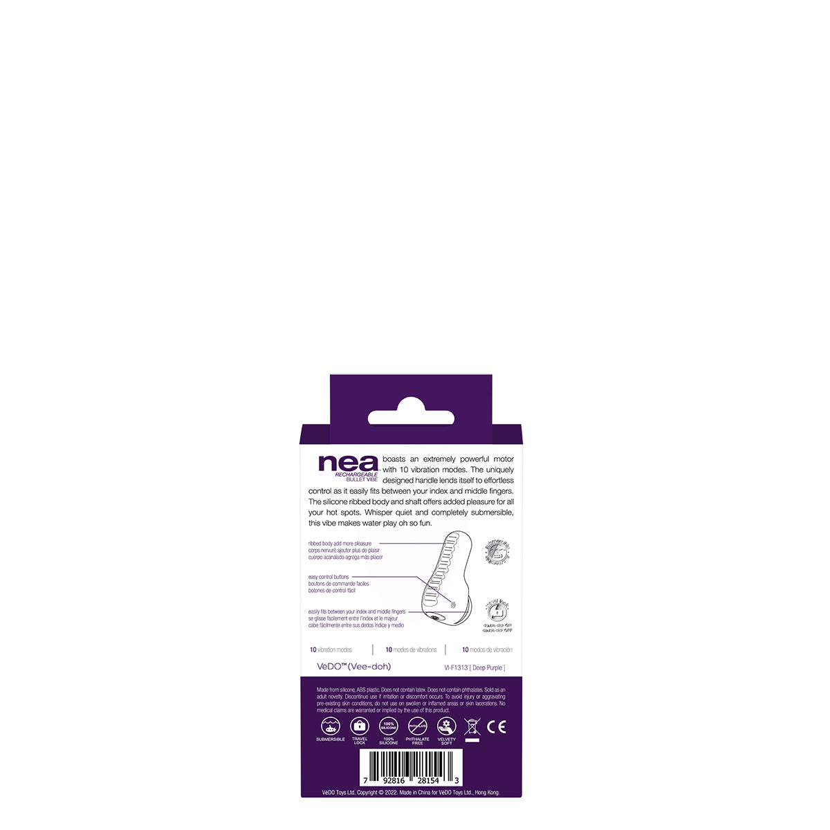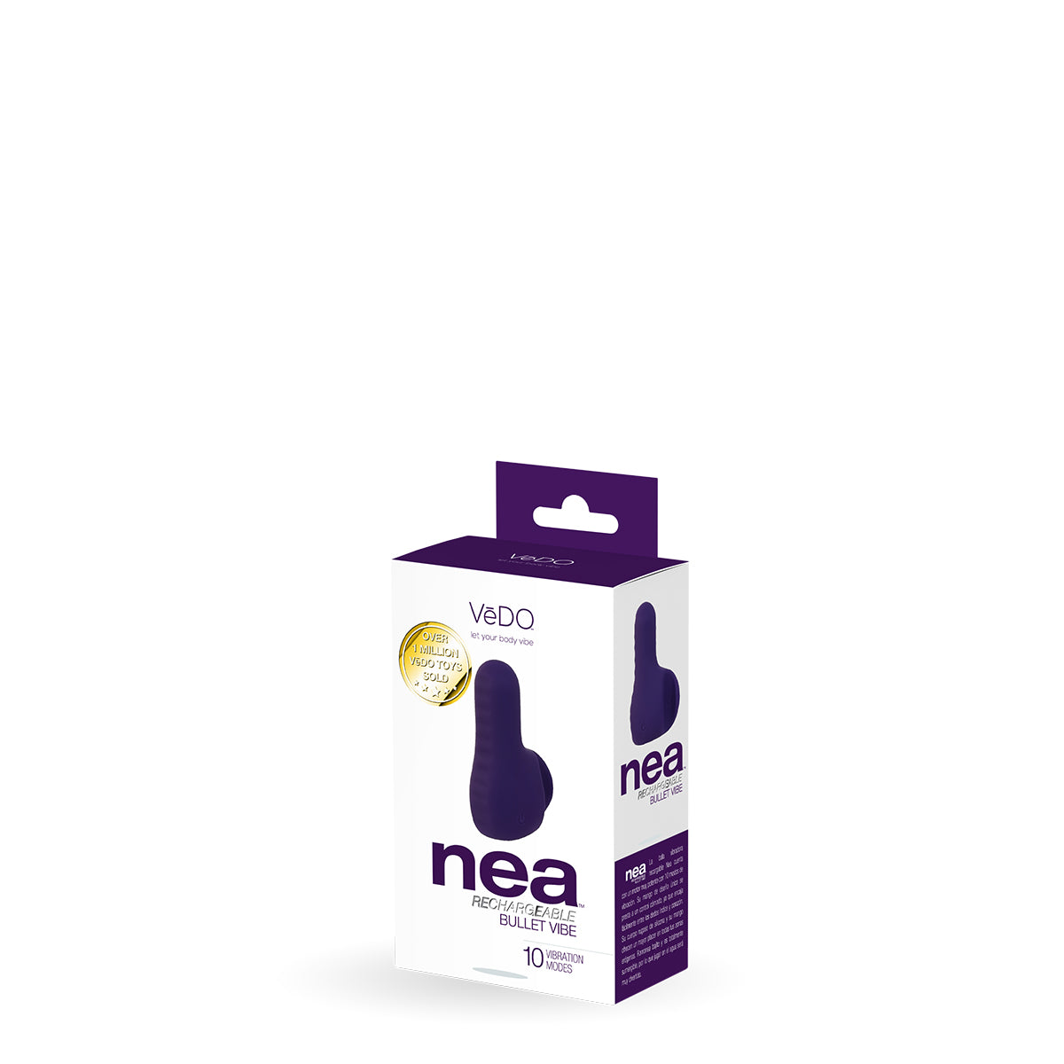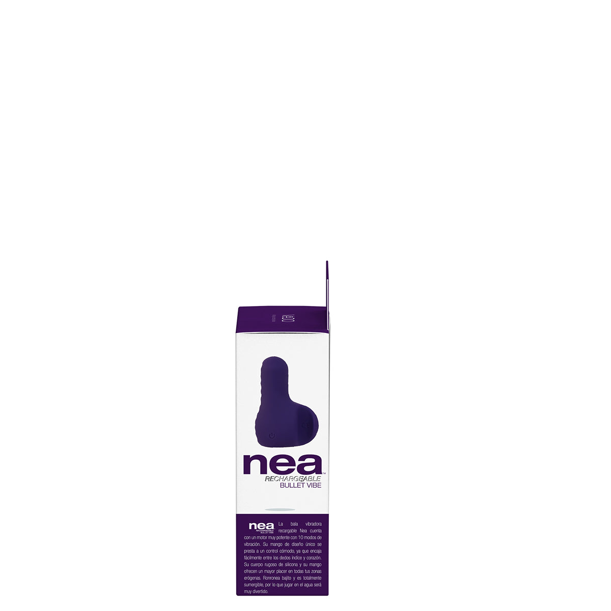 Nea boasts an extremely powerful motor with 10 vibration modes. The uniquely designed handle lends itself to effortless control as it easily fits between the index finger and middle finger. The ribbed silicone body and shaft offers added pleasure for all hot spots. Whisper quiet and completely submersible, this vibe makes water play oh so fun.